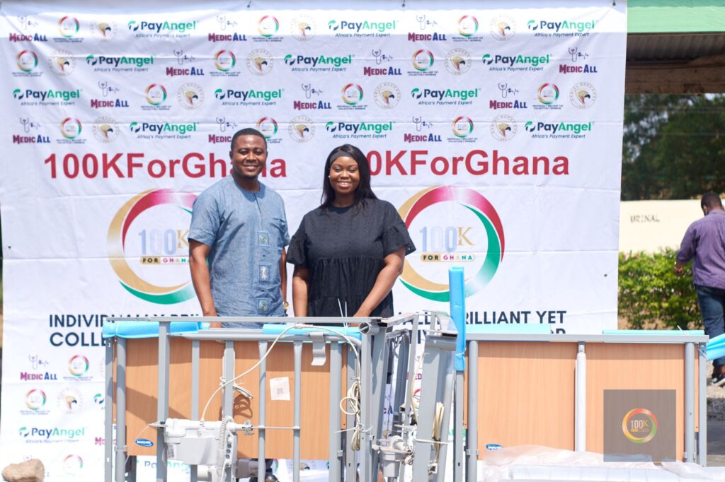 PayAngel Money Transfer Services has donated Invacare Medley Ergo Low Care Beds, and Oska Specialist Foam Mattresses to the Adidome District Hospital in collaboration with 100KForGhana, an Impact Funding Initiatives Group. This was at the Medical Outreach and Health Screening program at the Adidome District Hospital organized by 100KforGhana.