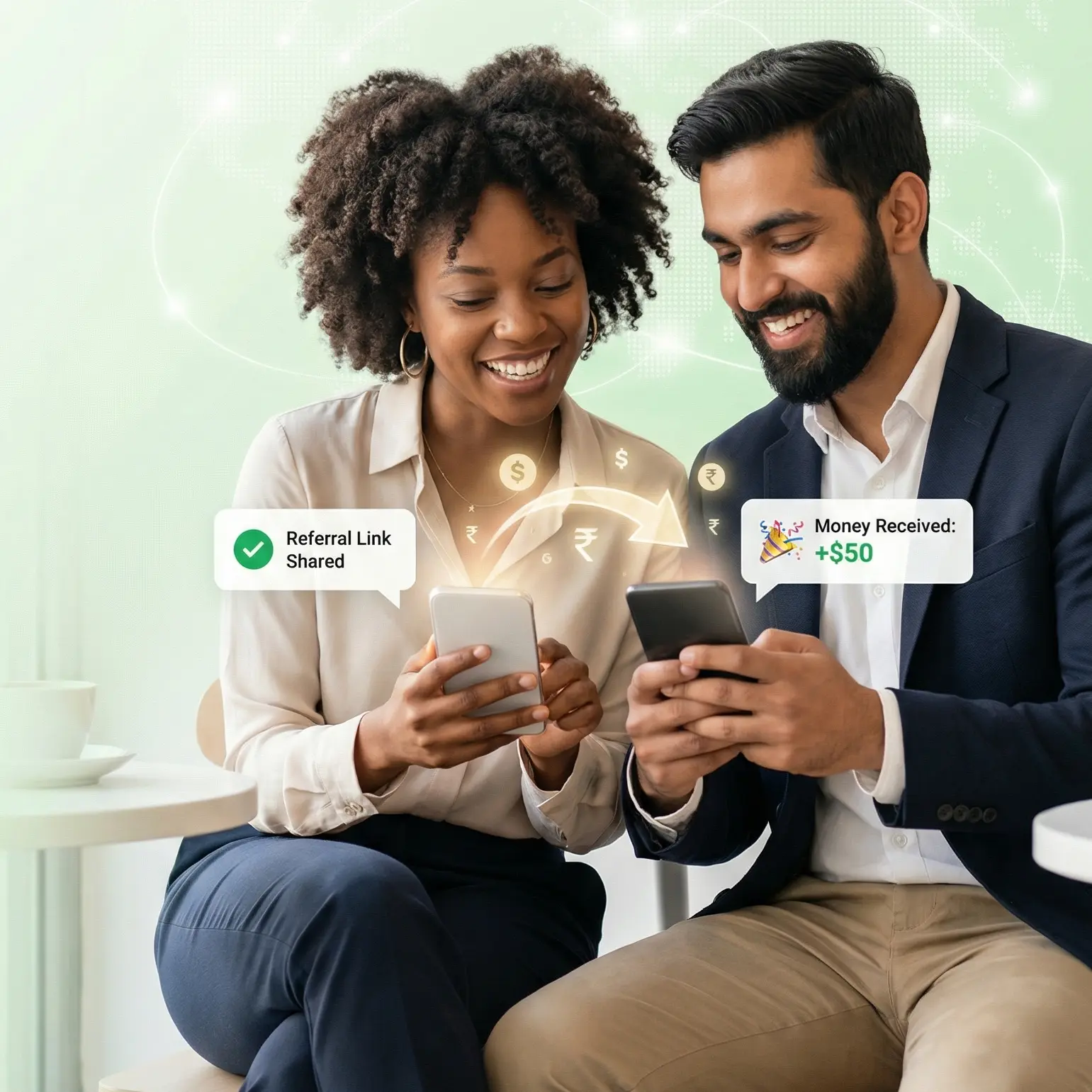 Share your referral code, and when your friend signs up and completes their first transfer, you get rewarded.